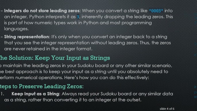 Digging up the nuances of leading zeros in Python can serve as a beneficial route towards enhanced coding practices. Understanding why Python has established such limitations can guide programmers towards inventive workarounds like string formatting. It reinforces the idea that numerous ways exist to solve a problem in the world of coding, even if some ways seem counter-intuitive at first glance.