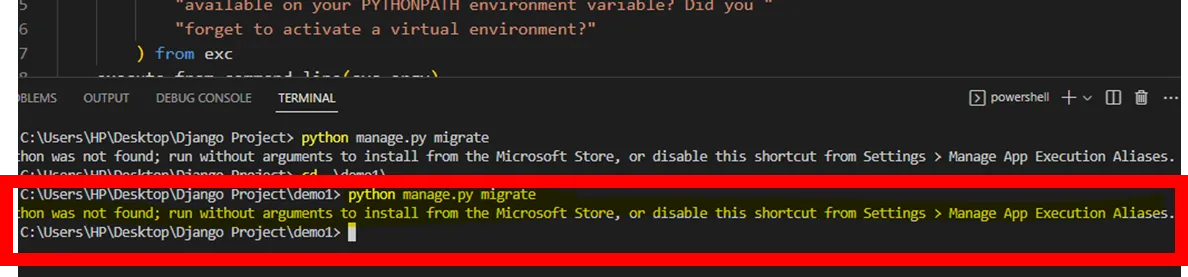This happens because the command you’re running is unable to locate the Python interpreter in the path specified or within your environment variables, alluding that Python isn’t installed in your system, or at least not properly. However, don’t be worried! The solution to this is straightforward—installing Python directly from the Microsoft Store or setting up the environment variable correctly if Python is already installed.