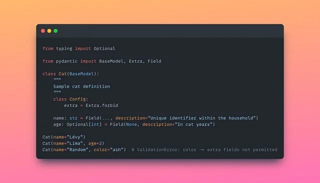 This way, the model can accommodate a wider range of data inputs, enhancing its flexibility whether your application is consuming an API endpoint, conducting data validation or dealing with JSON objects. You will appreciate Pydantic’s capabilities when scaling your application while maintaining code consistency and simplicity.